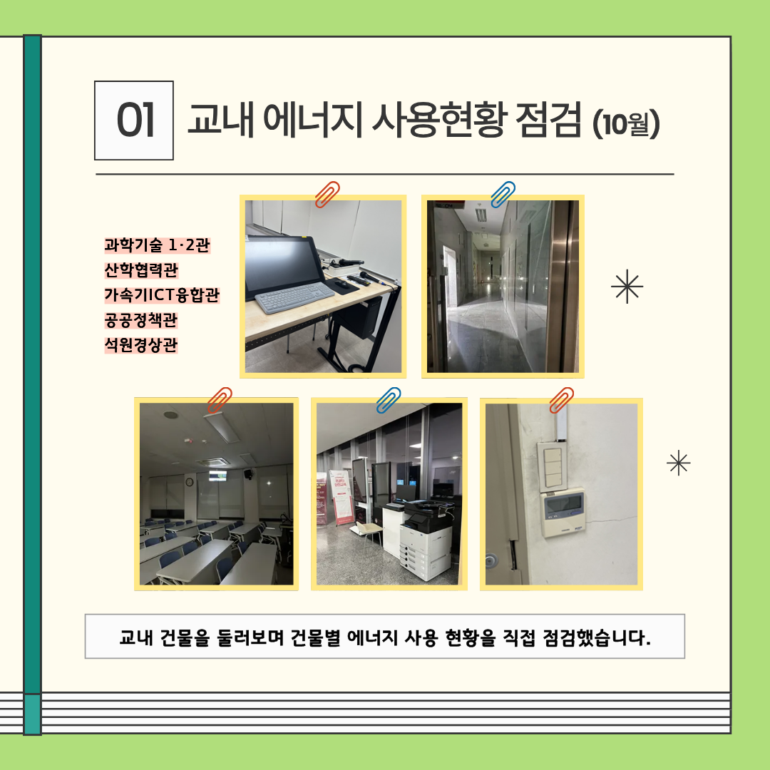 농심국제관부터 과기1·2관, 산학협력관 등 주요 건물을 직접 둘러보며 에너지 사용현황을 점검했어요.