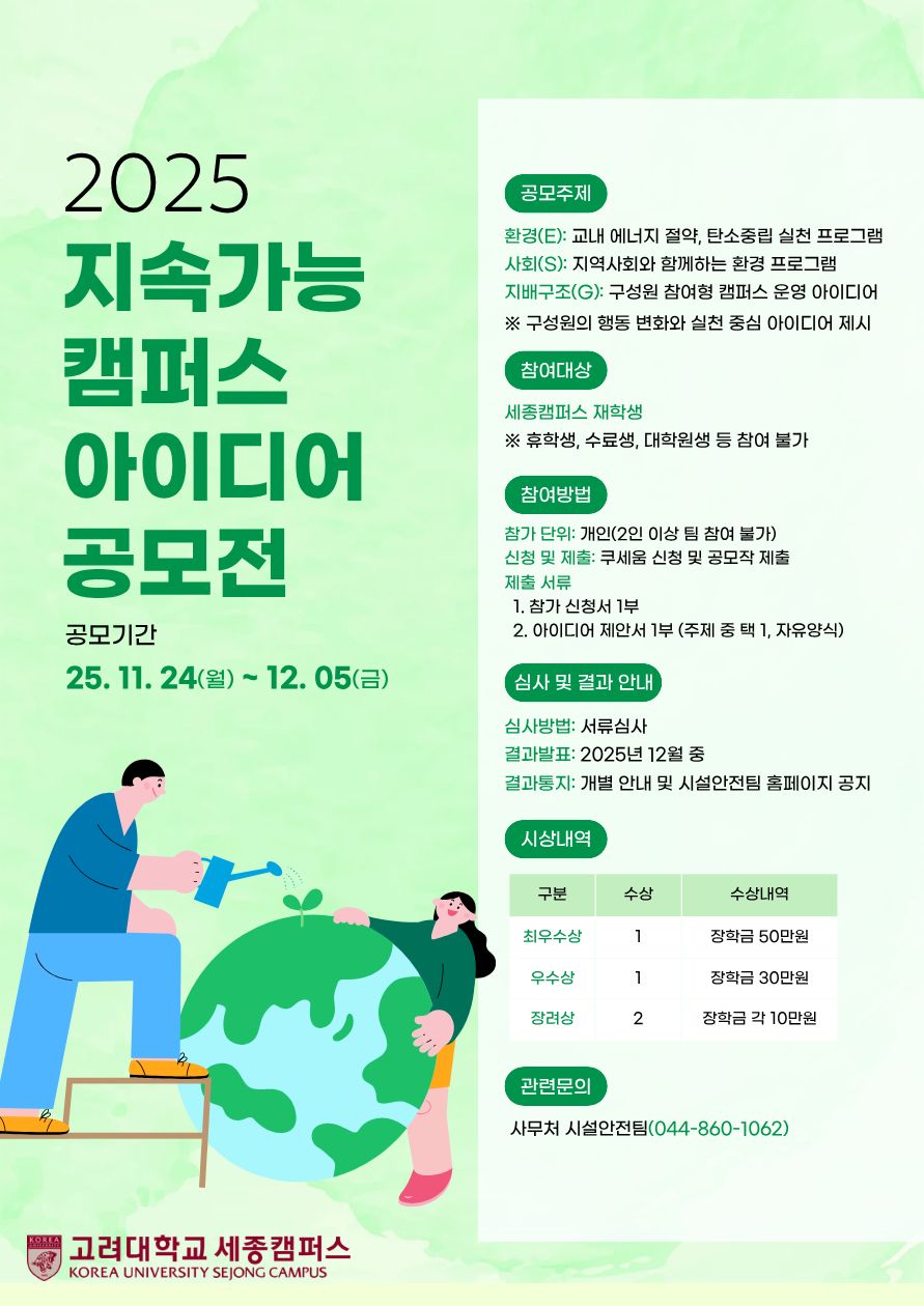2025학년도 지속가능 캠퍼스 아이디어 공모전 개최 안내